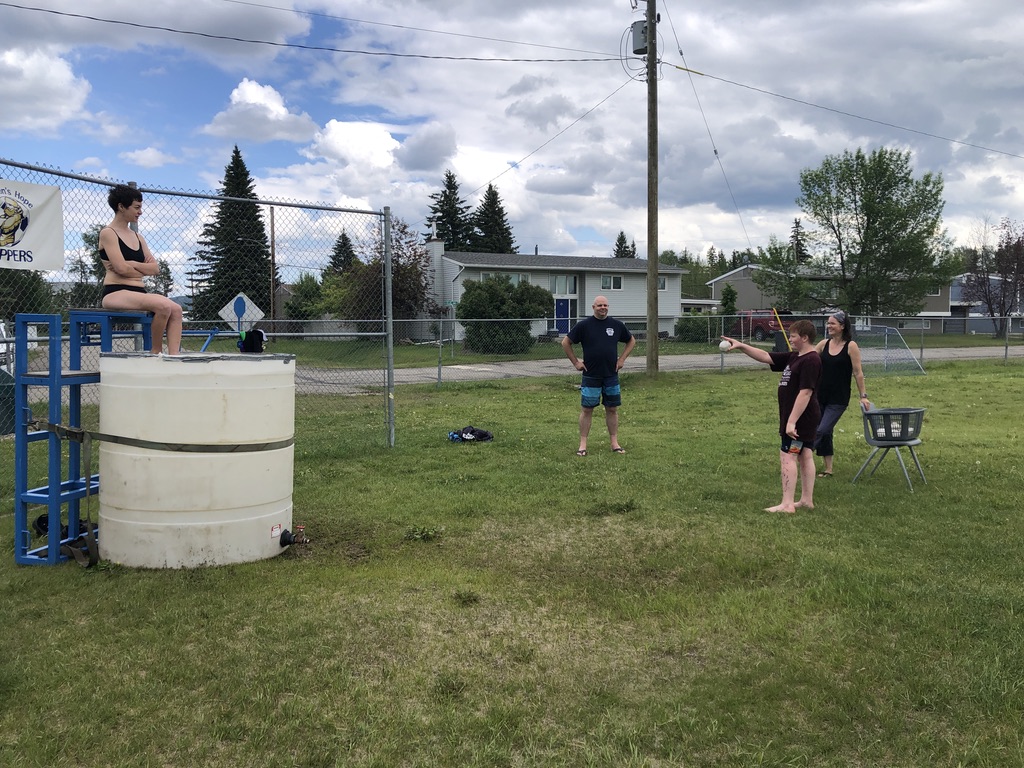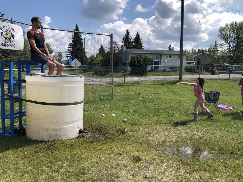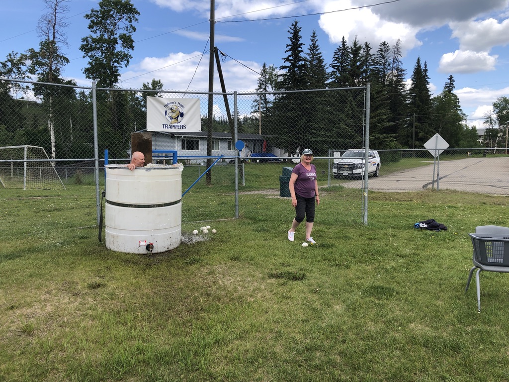 What an absolutely perfect day!  Thank you Ms Smith for organizing an amazingly fun day for our students!  Also thank you to the local HH Fire Department for filling up our dunk tank, and Trent Winnicky volunteering to be dunked.  Our local RCMP also joined in on the fun (thank you Cora Volz for stepping up). Halle Beebe volunteered to participate and help with the water station all day.  Mr. Laidlaw, as well as Rene were staffmembers voted by students to be “dunked”, and were keen participants.  Finally, great work to all of our staff for all of your efforts to ensure the different stations were fun!  Go HAWKS Go!  A few quick pics below: