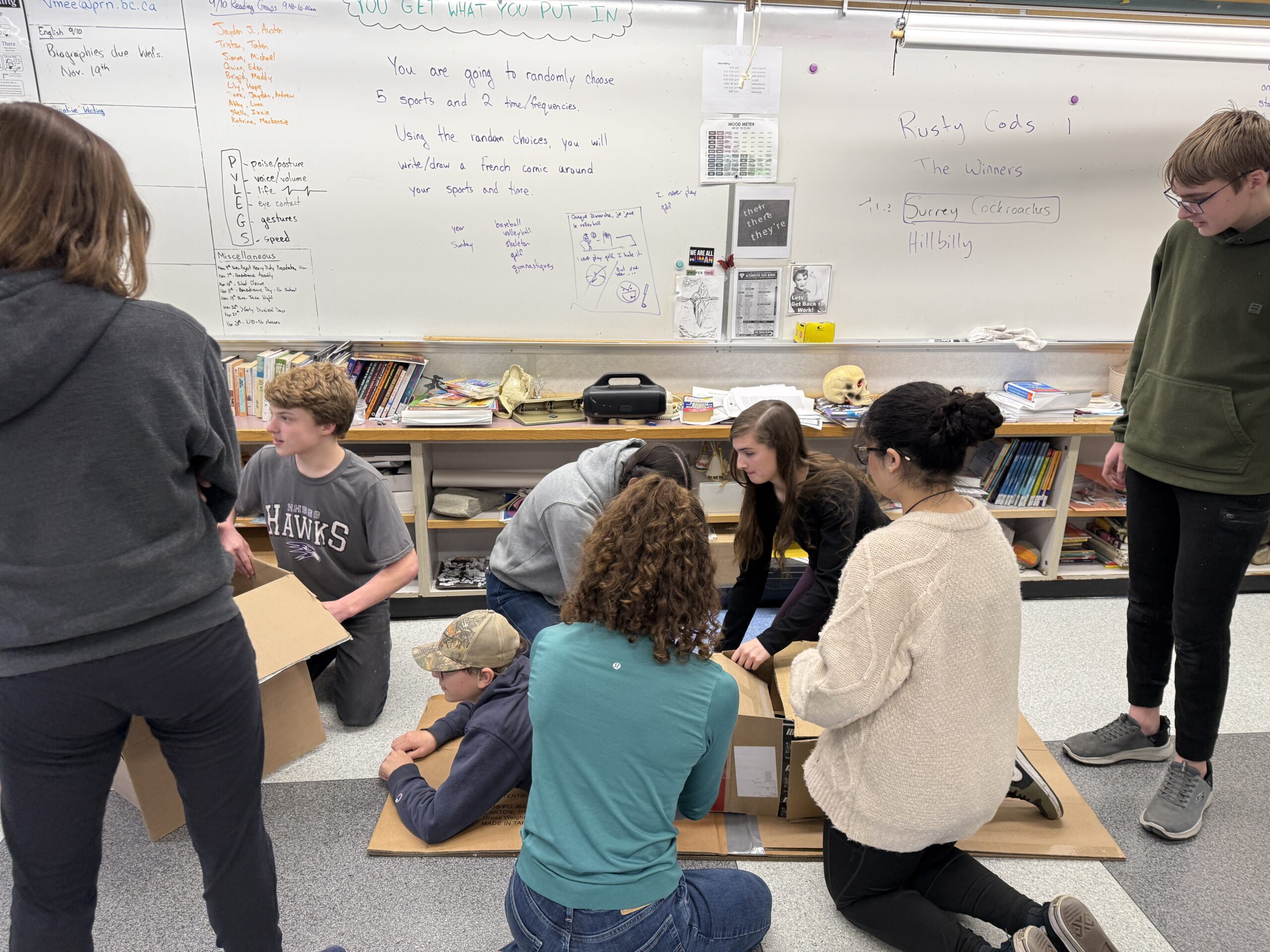 Our secondary students put forth some awesome creativity and energy creating their “Junkyard Wars” projects. Thank you Sue Stark for the amazing activities you are providing! A huge shout out to the folks at Peace Canyon for helping us with plenty of supplies. Sue also has a couple secondary students who are going to start assisting with leadership activities so we can run some activities for elementary classes later this year. Go HAWKS Go!