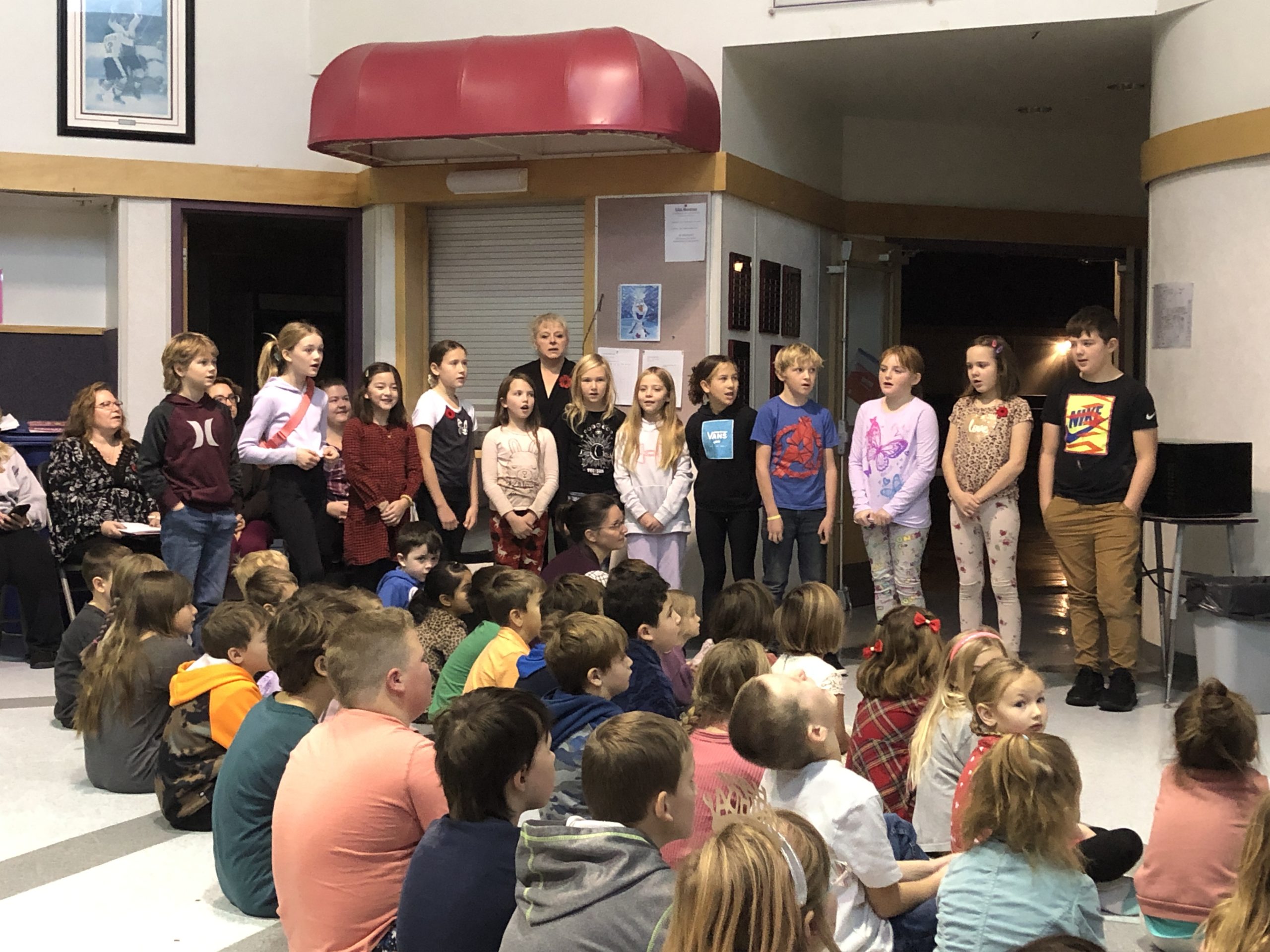 Thank you to all the parents & community members who were able to join us this morning on short notice. We will be having a “Gratitude Assembly” next Wednesday at 9:10am. This assembly will include presentation from our students (similar to the presentations that took place today), as well as some other celebrations, and a presentation from a local veteran. You are very welcome to join us. Below are a few quick pictures. I will send out some better photos next week (this morning was a little tricky dealing with the power outage).